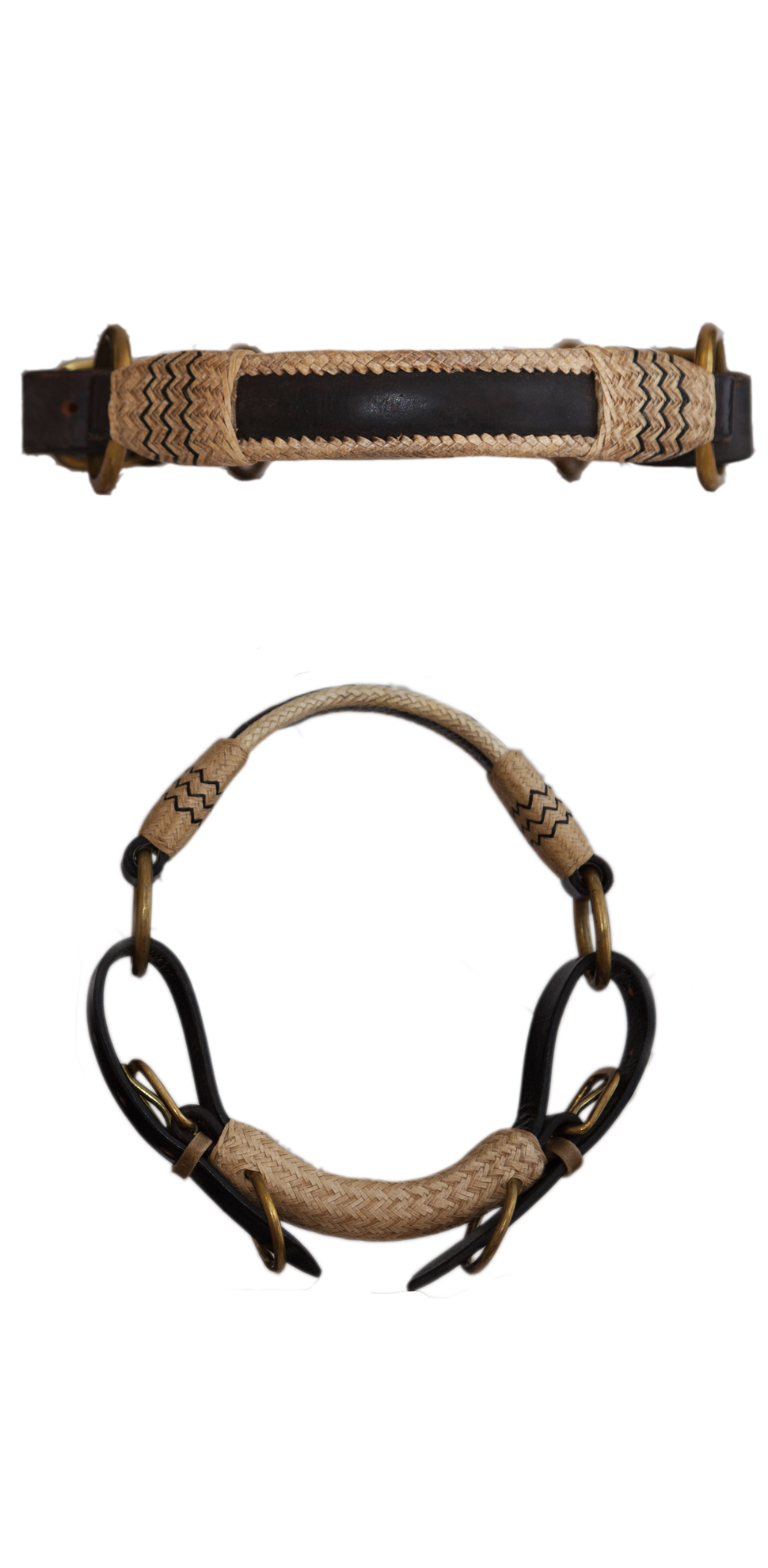 Aus weichem Leder versehen mit sehr schönen in Handarbeit gefertigten Ornamenten. Das lederne Nasenstück ist mit feingeflochtener Rohhaut eingefasst.