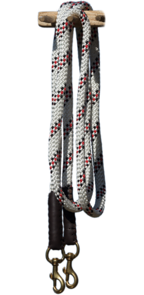 Geschlossene Nylonzügel aus hochwertigem Material mit messingfarbenen Snaps. Die Enden sind sehr schön mit genähten Ledereinfassungen abgesetzt.