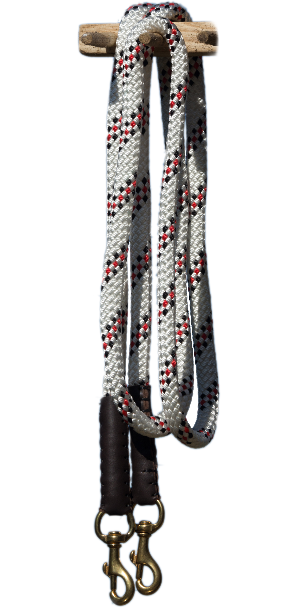 Weiße Nylonzügel aus hochwertigem, schwerem Material mit genähten Ledereinfassungen und Snaps
